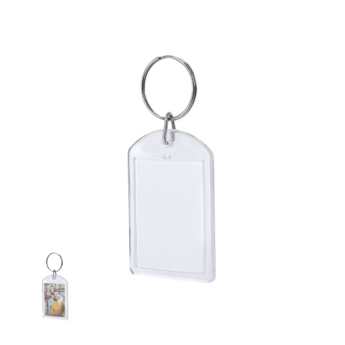 Original llavero transparente con acabado brillante. Dispone de una pequeña ranura que incluye un papel blanco, perfecto para personalizar. Incluye anilla metálica resistente para un uso práctico y duradero.