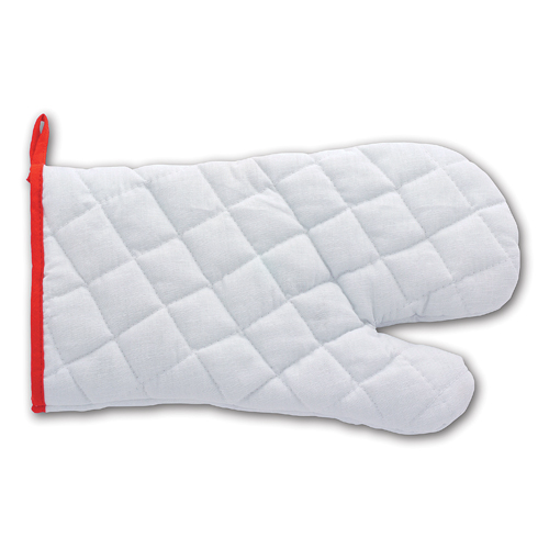 Manopla de cocina de alta calidad en suave material 100% algodón de vivos colores. Con una cara lisa especialmente diseñada para impresión y cinta para colgar. Una Cara Lisa para Impresión