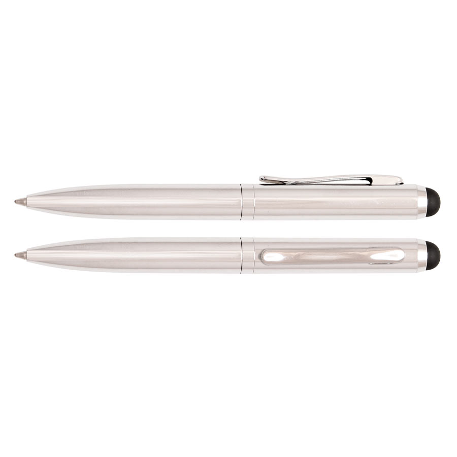 Bolígrafo Metálico modelo "Hotel", con goma posterior negra "Touch-Screen" para pantalla táctil. Escritura negra.