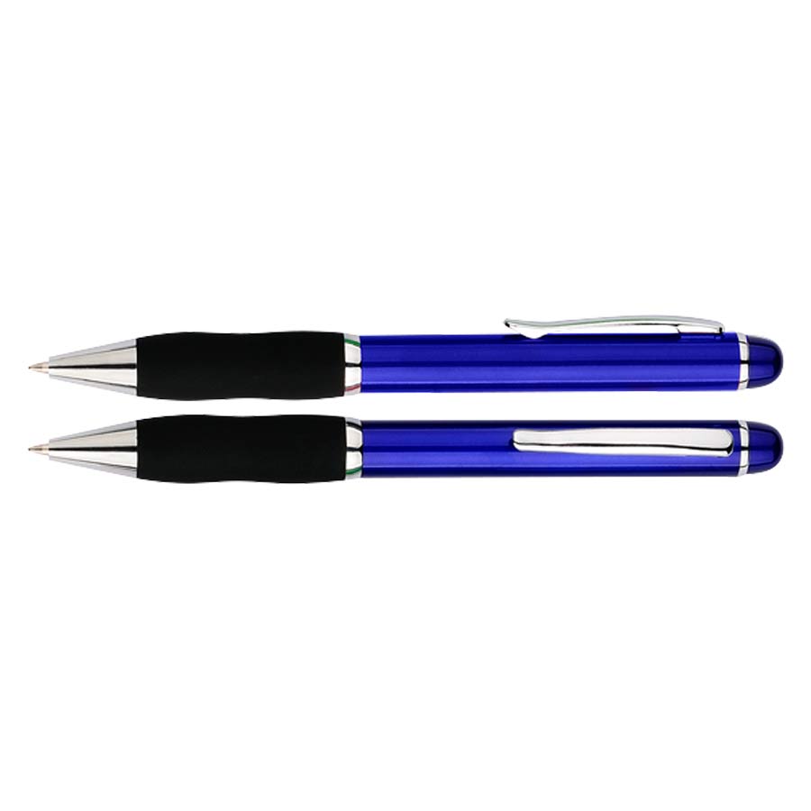 Bolígrafo plástico "Qasar" con cuerpo de color metalizado. Escritura azul.
