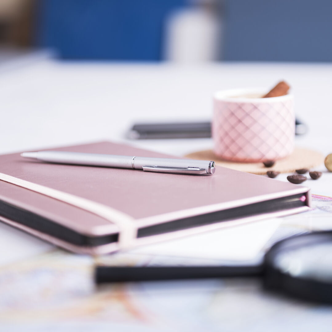 Bolígrafo fabricado en aluminio, de acabado brillo y mecanismo giratorio, con accesorios y anillas en cromado. Disponible en extensa gama de colores, con tinta azul.