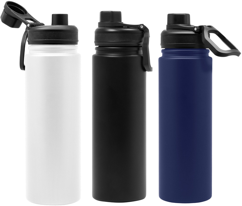 Ø 7,5 x 26 cm. Capacidad 720 ml. Acero inoxidable. Botella doble pared, sellada al vacío. Interior en acero 304 y exterior en acero 201. Tapa con anillo de silicona, boquilla con cierre a rosca antiderrame y manija plástica para su agarre. Mantiene hasta 12 hs la temperatura de las bebidas calientes y 24 hs de las bebidas frías. Presentación en caja de regalo.