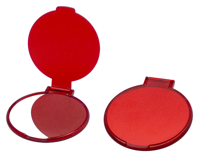 Espejo redondo de bolsillo, de plástico ABS, con tapa. Presentación individual en bolsita de polipropileno.