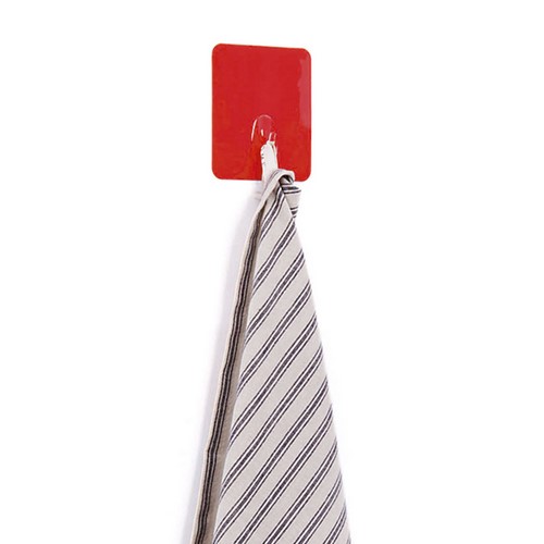 Gancho multiusos en resistente PET de vivos colores. Con superficie de fijación reutilizable y con alto poder de adherencia. Adhesivo. Reutilizable