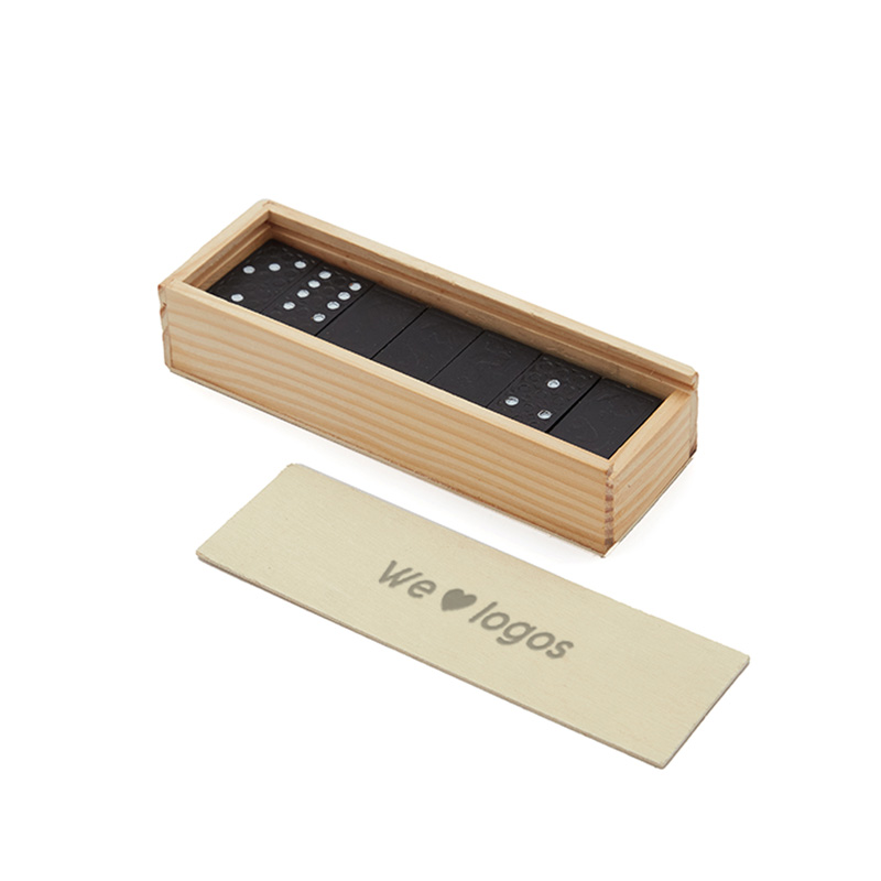 Juego Dominó, ideal para jugar en familia. Promueve la atención y la concentración y estimula el pensamiento lógico. Cuenta con 28 fichas negras bajo relieve con puntos blancos, para evitar el desgaste de la pintura. Viene en una caja de madera de 15 x 3 x 5 cm cuya tapa es desplegable.