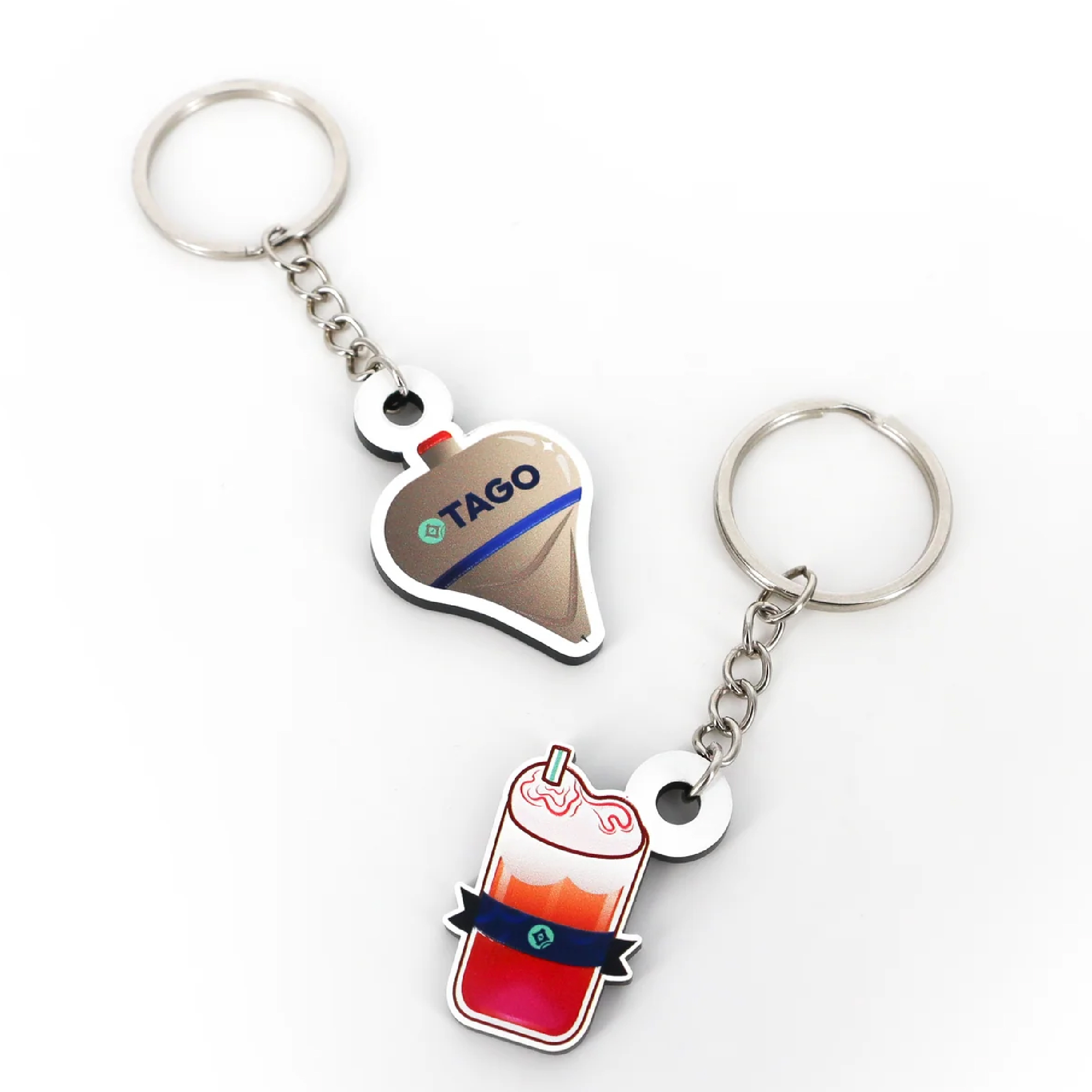 Llaveros que incorporan capas de textura, relieve y barniz, logrando un acabado brillante que eleva cualquier diseño y lo aleja de lo plano.