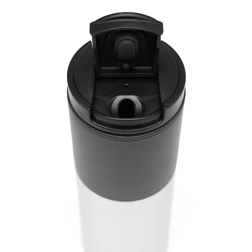 Mug térmico realizado con aluminio e interior de polipropileno negro. Boquilla regulable. Doble pared plástica. Packaging: Caja Impresa. Medidas: 22 cm x Diámetro 7,5 cm. Interior realizado en plástico. Capacidad: 450 ml. Producto libre de BPA. LOGO24: Producto disponible para el servicio de logueo en 24 horas respetando unidades mínimas de logueo y 200 unidades máximas. Consultar términos y condiciones del servicio