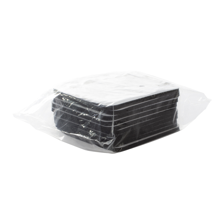 Posavaso cuadrado de 10x10cm. y 5mm de espesor, esquinas redondeadas, con base de silicona negra y cubierta de tela poliéster blanco para Sublimación.