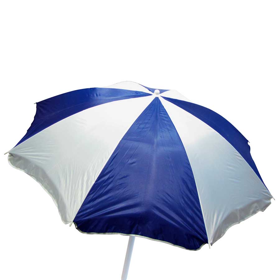 Quitasol bicolor de 8 cascos en tela Nylon 190T, de segunda selección. Incluye 2 varas metálicas blancas desmontables, la inferior de 101 cm. y la superior de 95 cm. Presentación en funda de PVC transparente con broche. Venta sin devolución.