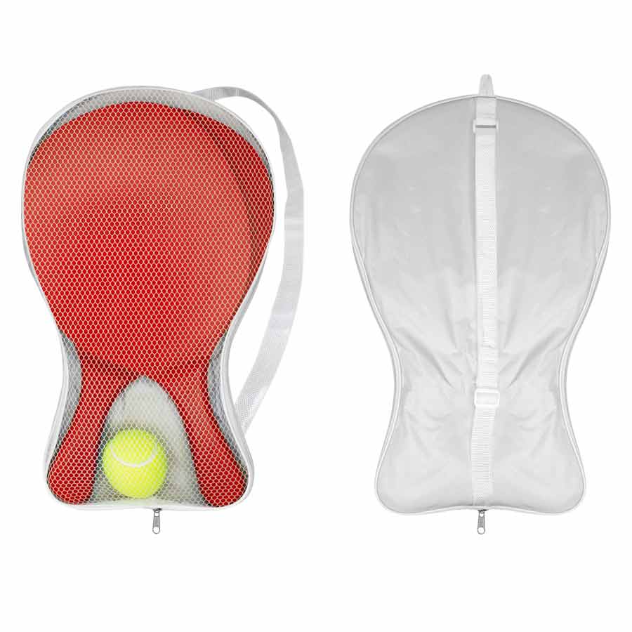 Set de Paletas de Playa de MDF esmaltado de 12mm. de espesor, modelo "Premium". Incluye bolso de tela poliéster blanco con frente malla y cinta para colgar + pelota de tenis amarilla. Cada paleta viene dentro de bolsa de polietileno.